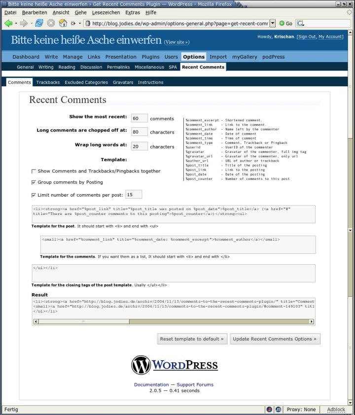 Options/Recent Comments